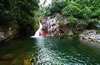 八寨溝旅游區(qū)位于欽州西北五十多千米的十萬大山腹地的貴臺鎮(zhèn)境內,總面積三萬多畝。距離南北高速公路二十余里,距離欽州至上思縣二級公路僅是三千米多。進入景區(qū)道路,均是混凝土和柏油路路面,無高坡要道。有八千米長的砂頁巖山澗地貌,八十多個大小各異的泉潭,小的像浴盤,大的可同時容納百人游泳戲水?扇菁{百人避風雨的仙人石屋、古老傳奇的賊王寨,云繞山轉營盤景觀、仙女戲水潭、牛郎織女橋(古石橋),還有九曲十八彎的人造月亮湖和松虬藤纏、獸走鳥鳴、遮天蓋地的原始森林等等。