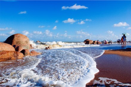 三娘灣位于欽州市南部犀牛腳鎮(zhèn)境內,距欽州市區(qū)38千米、南寧168千米、北海100千米,南臨北部灣,背倚烏雷嶺,是中華白海豚之鄉(xiāng)、電影《海霞》拍攝地。三娘灣以碧海、沙灘、奇石、綠林、漁村、海潮、椰林、中華白海豚而著稱, 2005年被評為“廣西十佳旅游景區(qū)”。有海上精靈中華白海豚,其中三娘石、鎮(zhèn)海石狗、“海霞姑娘”—三娘灣女子民兵隊、漁家旅館等景點。