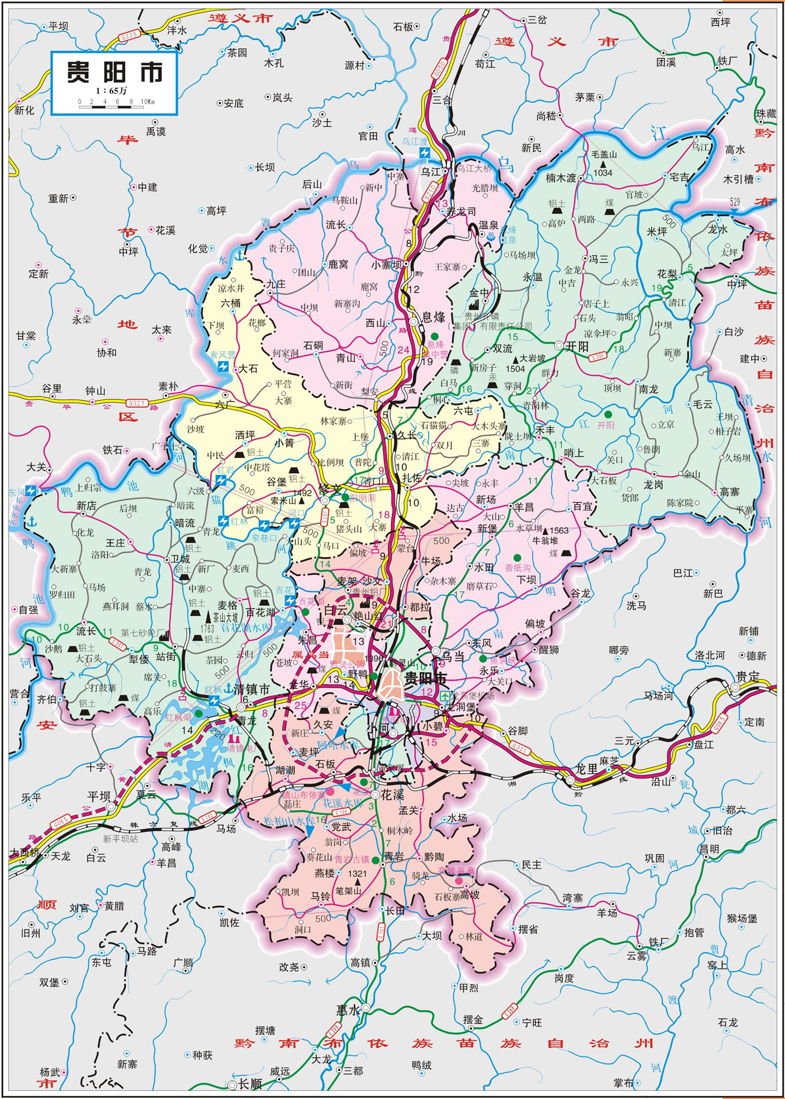 貴陽市轄6個區(qū)、3個縣、代管1個縣級市: