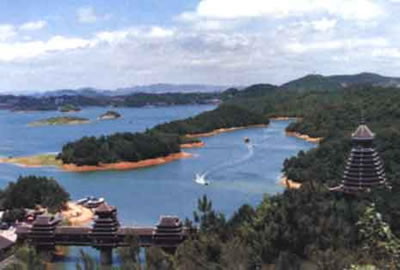 貴州國家級風(fēng)景名勝區(qū)之一的紅楓湖風(fēng)景名勝區(qū)是連貴州本地人都十分愛去游覽的地方,它不僅僅因它的湖泊面積大更因它的湖上星羅棋步的小島而吸引著本地的外地的游客。它的水域總面積為57.2平方公里,蓄水量可達6億立方米,為貴州高原人造湖之最,據(jù)專家考證出來的數(shù)據(jù)顯示,紅楓湖比北京的十三陵水庫大12倍,相當(dāng)于6個杭州西湖。