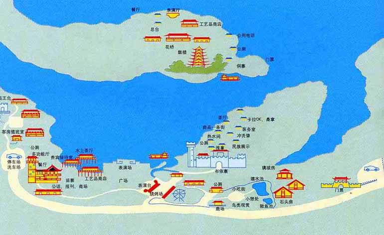 民族村不僅薈萃了大西南16個民族的原始風(fēng)俗表演,而且還從全國各地引進雜技馬戲、珍奇猛獸馴化表演等等。每周還舉辦一次“土風(fēng)狂歡夜”,各民族的歌舞在這里各領(lǐng)風(fēng)騷,令游人大開眼界。\