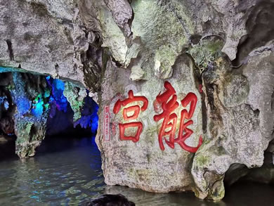 龍宮水溶洞長達(dá)15公里,為國內(nèi)之冠。景區(qū)對外開放了二段,長1260米,洞內(nèi)鐘乳千姿百態(tài),與北方溶洞相比更顯細(xì)致與精巧,與南方溶洞相比更顯神秘與奇特,其洞廳構(gòu)造宛如神話中的龍王宮殿!暗叵吕旖⑻焐鲜帧钡娜芏达L(fēng)景價(jià)值,是目前國內(nèi)已發(fā)現(xiàn)的其它同類型景區(qū)中無以比擬的,大詩人艾青稱“大自然的大奇跡”,國畫大師劉海粟譽(yù)“天下奇觀”,全國溶洞專家感嘆“覽龍宮知天下水洞,蕩輕舟臨人間仙境”!吧讲辉诟,有仙則名,水不在深,有龍則靈”,龍宮就是這樣的人間天堂。
