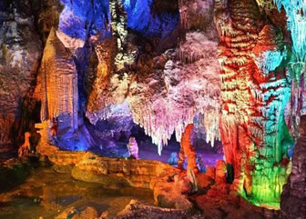 旅游建議:船在水道中緩緩而行,洞中怪石嶙峋,在彩燈的映照下,千次百態(tài),狀物擬人, 維妙維肖,什么蓮花寶座,羅紗錦帳,千年壽星,童子戲水,數(shù)不勝數(shù)。