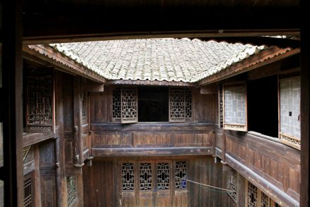陶家院位于古城東北角,是清末木商陶明哲的住宅,為三間搭兩廂型建筑,四周?chē)唢L(fēng)火墻,天井鋪青石板,窗扇均為雕刻精美的木板花窗,上面雕有精致的鳥(niǎo)獸,其中的鏤空玲瓏木板雕鏤更為奇特,書(shū)房?jī)?nèi)有壁畫(huà),家具陳設(shè)完全,工藝精良,裝飾典雅,屋前建有門(mén)樓及防火石缸,是古城最有代表性和保存最完好的古民居建筑。