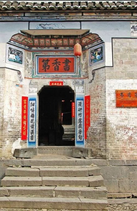書(shū)香第位于南門(mén)大街,建于清末,書(shū)香弟意取文化之家,讀書(shū)之族,以知書(shū)識(shí)禮為立家之本。三間三進(jìn)二天井,雙重檐出水,堂屋窗格為各式花窗,門(mén)前放有一對(duì)石鎖,鏨刻有“連中三元”、“連升三級(jí)”字樣,防火缸鐫刻有古代兵器戟等,作為練武人家的象征,大門(mén)門(mén)板用堅(jiān)硬的木材青杠做成,十分牢固,門(mén)后地面安有青石鑿成的頂門(mén)槽,屋角備有頂門(mén)扛,供夜晚頂門(mén)使用,是隆里的典型民居。