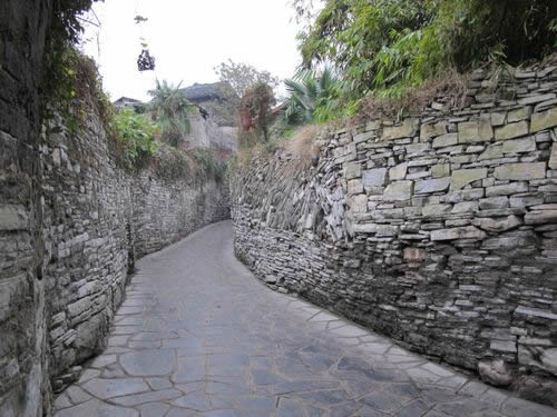 城墻:青巖古鎮(zhèn)城墻在山嶺上環(huán)繞,綿延約兩千米。幾座城門隨著時間的推移已然無存,唯有那定廣門依然屹立在山崗上。定廣門是貴陽通往定番(今惠水)和廣順(今屬長順)的重要關(guān)口,控制著貴陽的糧道,當年“米三日不至,省城即成糧荒”。雄關(guān)漫道,沿石級而上,城樓高聳、巍峨。古驛道依稀可見,彎曲起伏在田野之中。