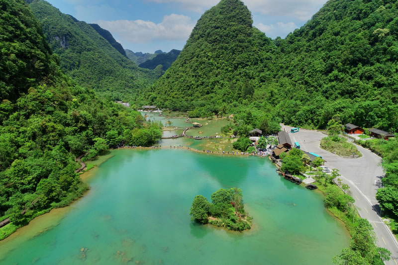 荔波縣城在主干道往廣場方坐汽車到小七孔路程40分鐘左右。