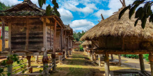 禾倉是瑤山古寨標(biāo)志性的歷史古建筑,有的禾倉已存在上百年。禾倉建筑獨(dú)特,用四柱支撐,上層墊以木板,周圍用竹籬笆圍成圓形,頂上蓋以毛糙,這些禾倉里面用來存放糧食和貴重物品,具有防潮、防盜、防鼠的功能。禾倉下面通常會(huì)放置一些生產(chǎn)工具,或者供寨上的人們聚會(huì)聊天。