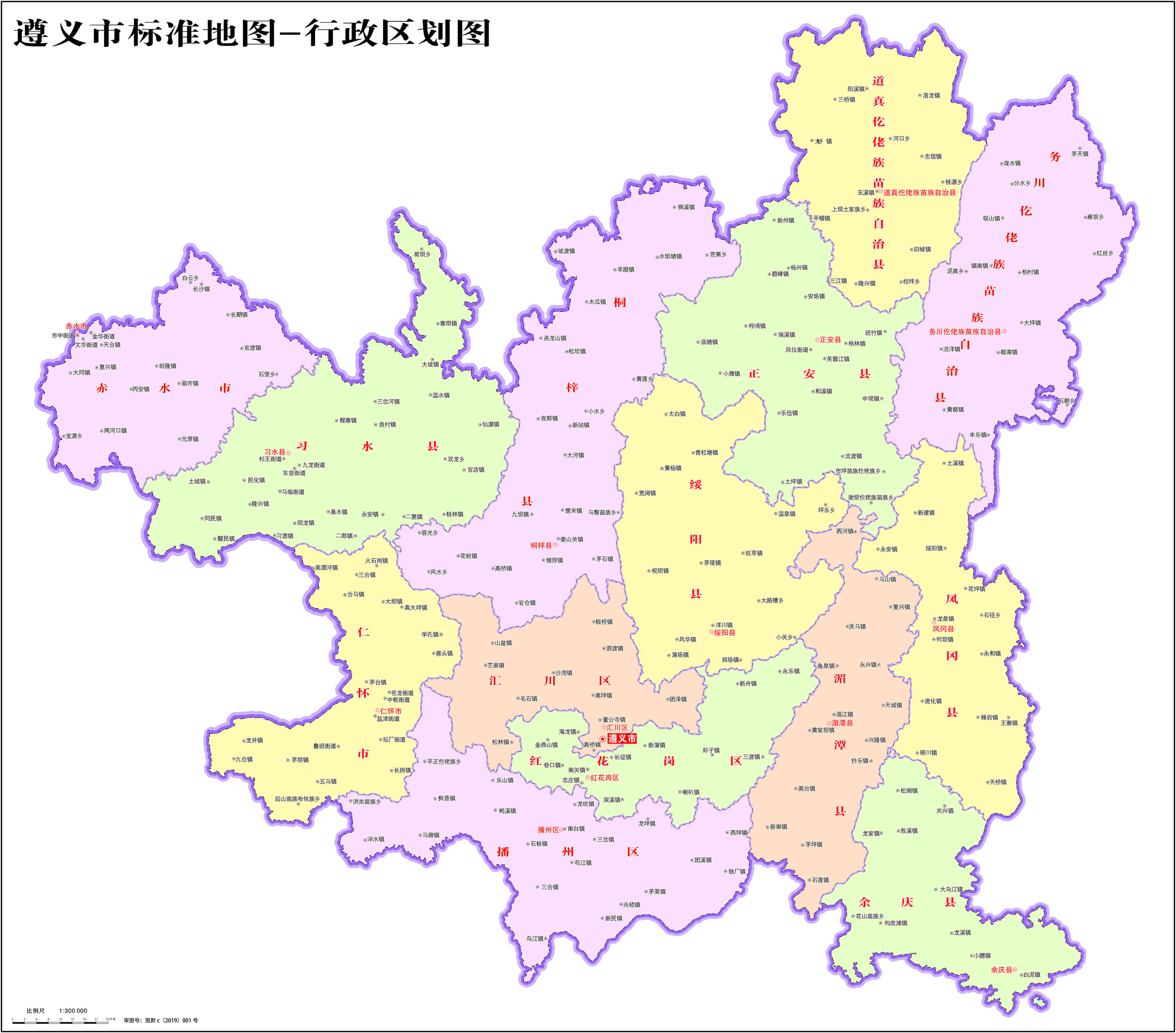 遵義市轄3個區(qū)、7個縣、2個自治縣,代管2個縣級市:
