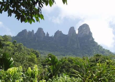 仙安石林位于毛感鄉(xiāng)境內(nèi),距保亭縣城約40公里路程。1992年以前這里還是一個(gè)鮮為人知的地方,只有極少數(shù)采藥人偶爾闖進(jìn)過(guò)林中,因?yàn)椴涣私膺@奇怪的石頭,他們敬畏地將此山稱為“鬼山”或“神山”。1992年,海南師范學(xué)院的楊火教授在偶然中發(fā)現(xiàn)這一處瑰寶,并命名為“仙安石林”。仙安石林集奇石青山、懸崖洞穴、古樹巨藤于一體,本已獨(dú)得大自然萬(wàn)般寵愛(ài)。1996年,距此數(shù)十里地的一個(gè)苗村搬遷到南片石林旁的一處平地上,石林又平添了一層濃郁的苗家風(fēng)情。