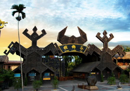 甘什嶺檳榔谷原生態(tài)黎苗文化旅游區(qū)自然景觀包括:黎族田園風(fēng)光、海南島面積最大、最古老的擯柳園、多種亞熱帶古樹、山泉溪水成多級(jí)瀑布從園中穿流而形成的怪石群。人文景觀有:“奧雅宮”(黎族頭人住的房);“隆閨屋”(黎族姑娘居住和娛樂(lè)的場(chǎng)所)等。來(lái)海南旅游觀光客可參與黎家古老的弓騖射擊,品嘗黎家竹筒飯和黎家山茶,觀賞多姿多彩的黎族歌舞。