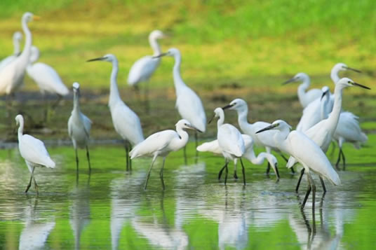 鷺鷥天堂位于海南省屋基村。村中三、四層樓高的三棵大榕樹(shù)和茂林修竹,成為萬(wàn)只白鷺生活的"天堂"。白鷺又稱(chēng)鷺鷥,屬鳥(niǎo)綱鶴形目鷺科,是世界上受保護(hù)的珍禽之一。白鷺群棲于屋基村已有多年。每年臨近清明成群結(jié)隊(duì)飛來(lái),12月以后分批離去,在此生活八、九個(gè)月之久。為便于觀(guān)鳥(niǎo),村中修建了高達(dá)6層的觀(guān)鳥(niǎo)樓。