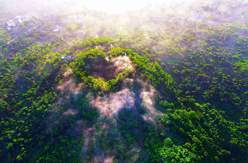 雷瓊海口火山群世界地質(zhì)公園,4A級景區(qū),世界地質(zhì)公園,國家地質(zhì)公園。位于?谑形髂鲜芥(zhèn),屬地塹一裂谷型基性火山活動地質(zhì)遺跡,也是中國為數(shù)不多的全新世(距今1萬年)火山噴發(fā)活動的休眠火山群之一,具有極高的科考、科研、科普和旅游觀賞價值。 地質(zhì)遺跡主體為40座火山構(gòu)成的第四紀火山群。園區(qū)在火山錐、火山口及玄武巖臺地上發(fā)育熱帶雨林為代表生態(tài)群落,植物有1200多種,果園與火山景觀融為一體,為熱帶城市火山生態(tài)的杰出代表?偯娣e108平方公里。主要景點有馬鞍嶺、雙池嶺、仙人洞、羅京盤等。