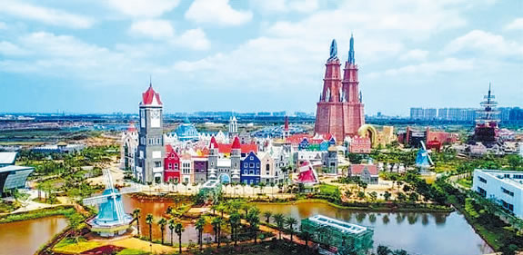 ?陂L影環(huán)球100奇幻樂園,位于海南省?谑行阌^(qū)椰海大道100號、西海岸長流鎮(zhèn)內(nèi),樂園一期占地837畝,總建筑面積168667.66平方米,由票務(wù)區(qū)、荷蘭區(qū)、中國區(qū)、德瑞聯(lián)合區(qū)、英國區(qū)、西班牙區(qū)6大園區(qū)組成,依托長影電影文化底蘊,邀請世界一流設(shè)計團隊主持規(guī)劃,原汁原味地展現(xiàn)各國人文藝術(shù)與建筑特色。按四大主題分區(qū):絲路探險、光影奇境、魔幻谷、夢幻童世界。2020年5月掛牌為國家4A級景區(qū)。