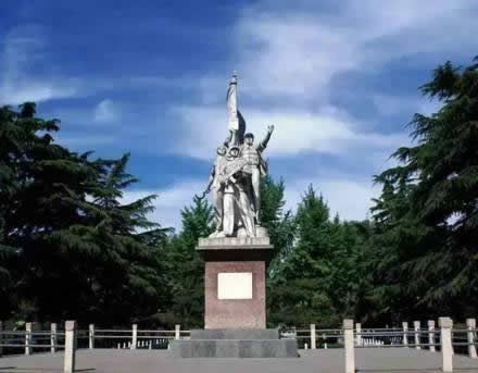 步入大門,迎面而立的是一組高約11米的工農兵塑像。該塑像成為邯鄲市繼晉冀魯豫烈士陵園內“八路軍”、“民兵”兩組大型人物群雕后,又一組大型雕塑。工農兵塑像的后面是筆直的公園大道,中間為如茵的草叢和剪裁整齊的灌木,兩側為蒼勁挺拔的雪松,一直向西延伸到叢臺下的環(huán)城湖。
