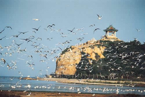 鴿子窩一帶有礁石、濕地,樹木叢生,百草豐茂,是鳥類理想的棲息地,是著名的世界級觀鳥勝地。這里曾經(jīng)出現(xiàn)過多達(dá)14700多只的鳥群;一年之中,能見到四百多種鳥,占我國可見鳥類的40%。每年春秋季節(jié),國內(nèi)外的鳥類專家和愛好者在鴿子窩一帶觀鳥。1999年,在北戴河還舉辦了國際觀鳥大賽。鳥類是最有權(quán)威的自然環(huán)境鑒定師。鳥類選擇的棲息地,必定環(huán)境質(zhì)量最好。無怪乎有人在這里寫出這樣的詩句來:從來鳥兒最聰明,偏向好山好水停。能知善惡解人意,碧海翠峰白精靈。北戴河優(yōu)美的自然環(huán)境,是大自然的造化,也是當(dāng)?shù)鼐用袷朗来M力保護(hù)的結(jié)果。