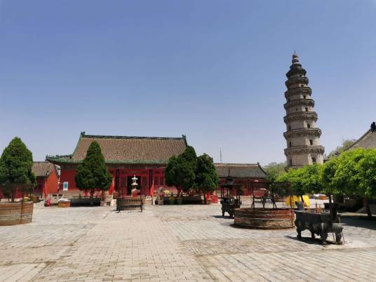寶云寺內(nèi)有一塔,高36.5米,塔體為八面棱錐體磚木結構,自四層以上四面有門,塔的各層建筑風格各異,或成鴛鴦斗拱,或成梅花斗拱,雄渾古樸,氣勢磅礴。若登塔頂,需有一定的勇氣,因為每登一層都要繞塔沿半圈,找到另一側(cè)的入口。寶云塔原名擎天塔,位于衡水市區(qū)西南的舊城村東。該塔原在寶云寺內(nèi),因此稱寶云塔。