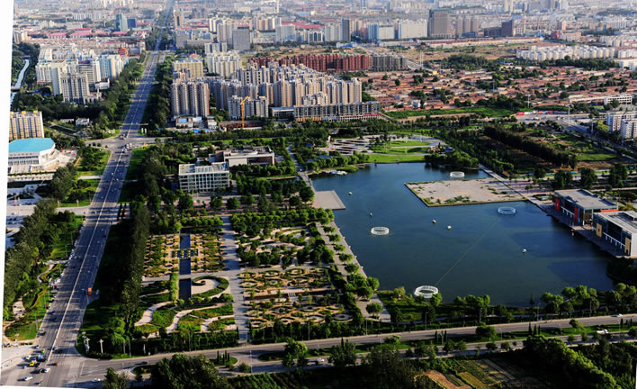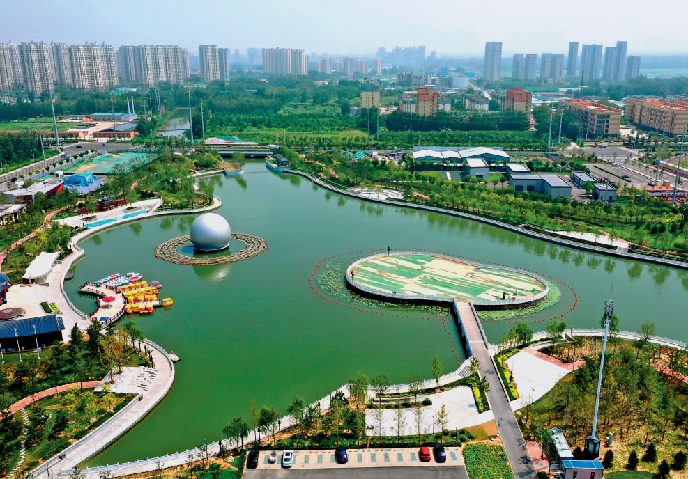 公園門前為兩個噴泉,主路兩側(cè)設(shè)置兒童游樂區(qū),配備了碰碰車、卡丁車、森林漂流、海盜船等游樂設(shè)施。公園中部為占地100畝的人工湖。以人工湖為中心,湖西土山上新建文化碑林,湖北設(shè)有動物觀賞區(qū),湖東側(cè)草坪大小各異8只漢白玉大象雕塑栩栩如生,東北部建有巖石園,南側(cè)建以清代四合院格局的“京韻風情”俱樂部,豪華典雅,古色古香。園內(nèi)還陸續(xù)開辟了青年林、巾幗林、八一林、親子林、公仆林、市民林等多塊紀念林地。