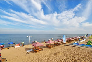 廣場緊靠沙灘浴場,浴場具有沙細(xì)、灘緩、水清、潮平四大特點(diǎn),自然環(huán)境優(yōu)美,游客在這里可以體驗(yàn)海水浴、熱沙浴、也可以去進(jìn)行沙灘排球、沙灘足球、沙灘拔河、拓展訓(xùn)練等游樂活動。到了晚上,在海螺廣場擇一位置,看海上的夕陽如何消失,看海上明月共潮生。支幾頂帳篷,和三五好友談天說地、參加篝火晚會,品嘗烤全羊等美味佳肴,最后和大海一起等待日出,感受太陽的心跳。