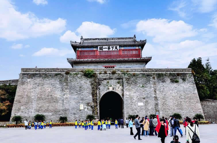 明洪武十四年(1381年),明太祖朱元璋下令在此筑城建關(guān),遂成為扼東北、華北咽喉要塞的軍事重鎮(zhèn),因其依山襟海,故得名山海關(guān)。山海關(guān)有“天下第一關(guān)”的美譽,牌匾為明代著名書法家蕭顯所書。山海關(guān)城周長約4千米,與長城相連,以城為關(guān),城高14米,厚7米,有四座主要城門,多種防御建筑。包括“天下第一關(guān)”箭樓、靖邊樓、牧營樓、臨閭樓、甕城以及1350延長米的明代平原長城等景觀。