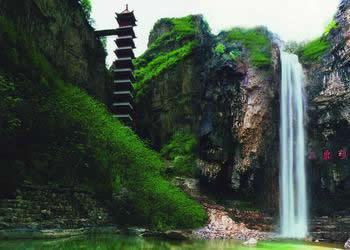 泉井 天桂山俗有“九泉一井”之說,最大的如沕沕水源頭靈泉,是沕沕水瀑布的水源。瀑布 “沕沕水瀑布”在天桂山景區(qū)西南沕沕水村!皼^沕水瀑布”古為平山十景之一,俗有“沕水瀑布從天降”之說。沕沕水為天然泉水,流量為0.35立方米/秒,垂直落差93米,形成天然奇觀。除沕沕水瀑布外,天桂山還有青龍觀瀑布、葫蘆谷瀑布等,旱時輕泄如簾,雨季下注如飛,水聲潺潺,一片涼意。