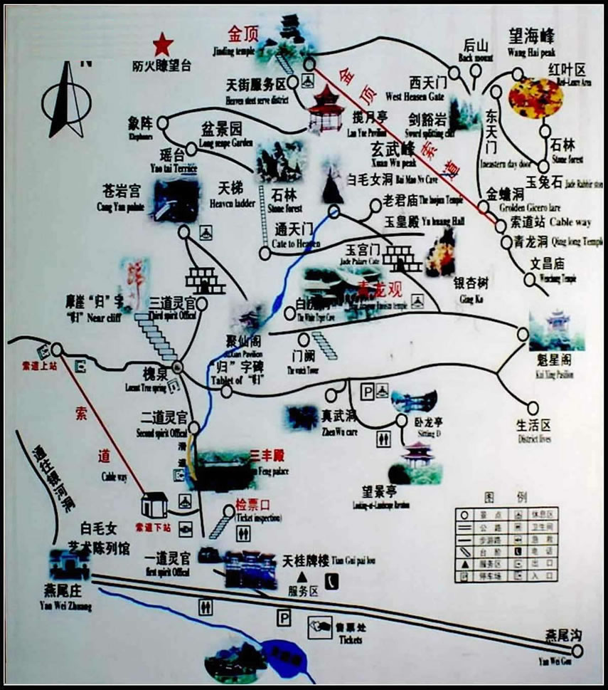 天桂山的青龍觀,原是為明朝末代崇禎皇帝修建的歸隱行宮。明朝末年,李自成起義嚴重動搖了明廷皇權。崇禎皇帝朱由儉在義軍紛起逼近北京的情況下,預感江山不穩(wěn),便密派心腹太監(jiān)林重萆出京選隱地修建行宮,以防不測。故所有的建筑既有皇宮之名,又有道教之稱,是中國唯一政教合一的古建筑群。清初一百年間,青龍觀屢有增設和修葺,擁有大小建筑十二處之多。其中真武殿、蒼巖殿和大光明殿共為青龍觀的三大建筑。在這座集皇家園林、道教宮觀和大自然秀麗景觀于一體的風景名勝區(qū)內(nèi),青龍觀的龐大建筑群,依山就勢,隨崖而建,真可謂陡崖鑲金,絕壁嵌珠,巧奪天工。天桂山既有雄秀交融的天然風光,又有皇家園林的高貴氣韻和道家仙山的莊嚴氣勢及神秘色彩,俗有“皇家道院”之稱,“北方桂林”之譽