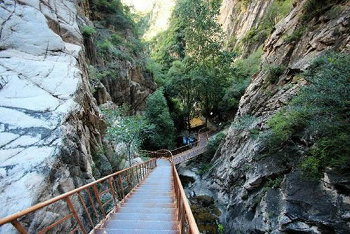 被譽(yù)為“天下第一峽”的百里峽是野三坡獨(dú)具特色的景區(qū)之一。在“雙崖依天立,萬仞從地劈”的百里“構(gòu)造嶂谷”中,不僅有“老虎嘴”“一線天”“回首觀音”“天生橋”,還有涌泉飛瀑,跌宕聲聲的峽谷溪流和生性好動(dòng)的小松鼠及山巔枝頭的鳥鳴。生態(tài)環(huán)境原始自然。峽谷內(nèi)旅游設(shè)施與自然相協(xié)調(diào),安全環(huán)保。置身其谷,步游路隨山峰而轉(zhuǎn),溪水繞游路而行,山水相依,植被茂密,空氣清新,世間無比。游在其中,頭頂絕壁萬仞、藍(lán)天一線;腳踏鵝卵石甬路,還可足療保。宦愤吶_、碧水清潭;身旁高山飛瀑、澗流潺潺;崖壁上灌木成林、青檀倒掛懸,獨(dú)根草、野海棠和羊齒蘭猶如墨彩涂于壁間,密如綠毯。