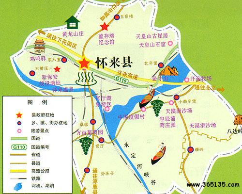 生態(tài)環(huán)境良好:該縣地處北京上風(fēng)上水,空氣清新,山清水秀,景色怡人,具有良好的生態(tài)環(huán)境。全縣林地面積129.5萬多畝,森林覆蓋率達(dá)到30.4%。位于懷來盆地中央的官廳水庫猶如一顆璀璨的明珠鑲嵌其中,環(huán)水庫周圍擁有梨園、海棠園、葡萄園等眾多花果園,臥牛山旅游度假、太師莊休閑度假、永定河峽谷漂流、天漠滑沙旅游多個各具特色的旅游景點(diǎn)、景區(qū)交叉點(diǎn)綴。集葡萄種植、加工、旅游于一體的容辰葡萄莊園,被國家批準(zhǔn)為首批農(nóng)業(yè)旅游示范點(diǎn)。天皇山、白龍?zhí)兜茸匀伙L(fēng)景區(qū),植被茂盛,風(fēng)景秀美。黃龍山莊花香幽遠(yuǎn),生態(tài)觀光獨(dú)具特色。