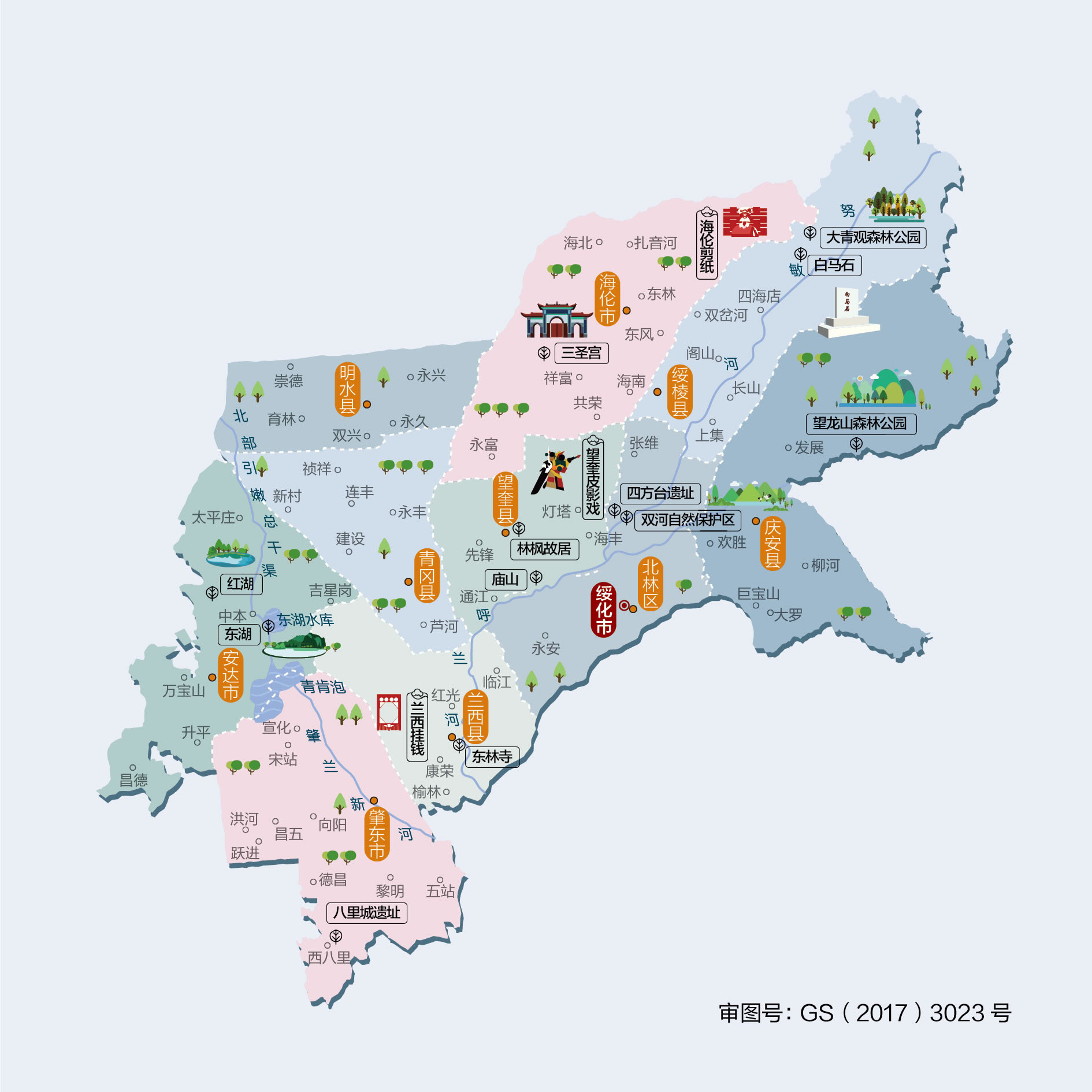 望奎縣 面積2314平方千米,人口286848,政府駐文明路48號(hào),下轄4個(gè)街道、10個(gè)鎮(zhèn)、5個(gè)鄉(xiāng)