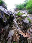 六疊瀑布中以第三級形似蓮花洞穴的蓮花瀑、第四級猶如飛珠濺玉的飛玉瀑及第五級恰象仙女洗浴的浴女瀑最為奇特壯觀。六疊瀑之下,有神龜潭。右側(cè)絕壁為仙掌峰,節(jié)慶之日,常有鑼鼓叮當(dāng)之聲。