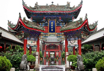 山陜甘會館位于河南省開封市龍亭區(qū)徐府街北側(cè),建于清乾隆四十一年(1776年),由居住在開封的山西、陜西、甘肅三省的富商巨賈在明代開國元勛中山王徐達的府址上聚資修建而成,是清代山西、陜西、甘肅三省旅汴客商經(jīng)商、貿(mào)易、聯(lián)絡(luò)同鄉(xiāng)感情的場所,已有200多年歷史。會館為四合院式布局,面積達3870.29平方米,主體建筑置于中軸線上,由南向北依次為照壁、戲樓、牌樓、正殿,附屬建筑位于東西兩側(cè),包含有左右掖門、垂花門、鐘樓、鼓樓、廂房、東西跨院等。