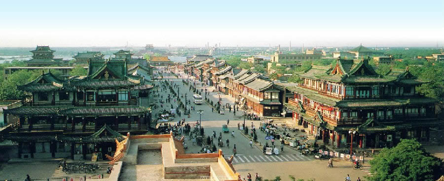 開封是一座具有悠久歷史的文化名城。地處中原腹地、黃河之濱的開封,是中華民族的主要發(fā)祥地之一,迄今已有2700多年的歷史。夏朝曾在開封一帶建都157年,稱老丘,商朝在開封一帶建都27年,稱囂。后均廢。春秋時期,鄭莊公在此修筑儲糧倉城,定名為“啟封”,取“啟拓封疆”之義,后避漢景帝劉啟之諱改名為開封。戰(zhàn)國時期的魏,五代時期的后梁、后晉、后漢、后周,北宋和金均定都于此,素有“七朝都會”之稱。尤其是北宋時期,從陳橋兵變到南宋偏安,歷經(jīng)九帝168年,“人口逾百萬,貨物集南北”,是當時全國的政治、經(jīng)濟、文化中心,也是國際性的大都會。北宋畫家張擇端的《清明上河圖》和孟元老的《東京夢華錄》,都生動地描繪了古都開封豪華蓋世的繁榮景象。悠久的歷史和燦爛的古代文化給開封留下了眾多的文物古跡和風景名勝,F(xiàn)在全市各級文物保護單位184處,其中,國家級5處,省級17處,市級26處,縣級136處。在這里,千年鐵塔、繁塔巍然聳立,在宋、金故宮遺址上建造的龍亭雄偉壯觀,明朝修筑的城墻古跡斑斑,道教建筑延慶觀風格別致,開封最古老的名勝古吹臺古樸典雅,以雕刻藝術(shù)著稱的山陜甘會館玲瓏剔透,還有著名的中原古剎相國寺宏麗華美。迎賓大道兩側(cè)的包公湖猶如四塊巨大的碧玉鑲嵌在古城,令人賞心悅目。開封市致力于發(fā)展旅游事業(yè),重修和新建了許多歷史人文景觀,如“清明上河園”、“包公祠”、“宋都御街”、“天波楊府”、“翰園碑林”一年一度的菊花花會等等。眾多的名勝古跡,得天獨厚的歷史、人文資源,譽滿中外的民俗文化,每年都吸引著大量的中外游客到開封參觀、游覽。如今,開封已被國家旅游局列為中原旅游區(qū)重點觀光游覽城市。