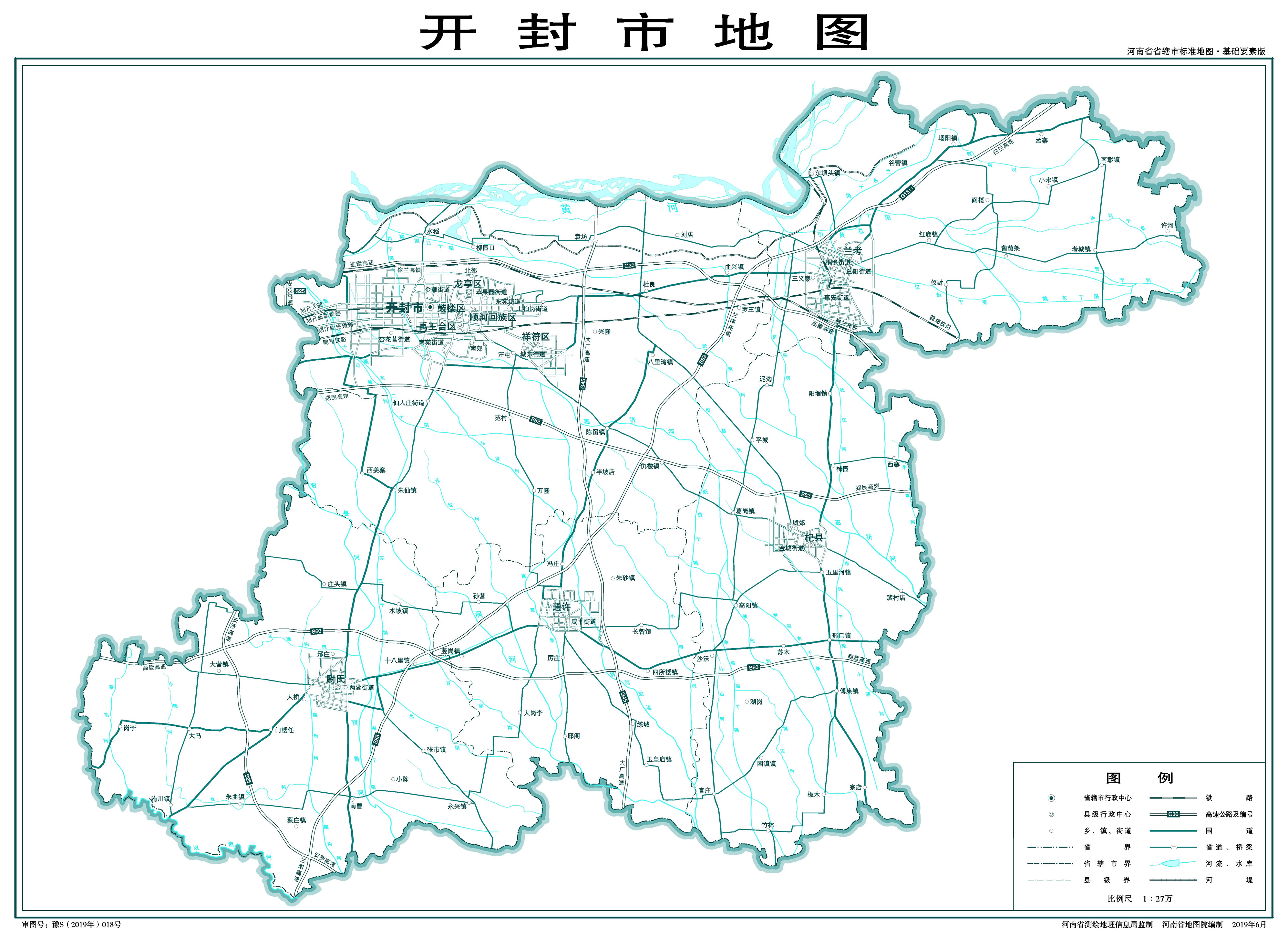 開封市轄5個市轄區(qū)、4個縣: