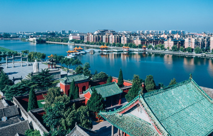 龍湖因伏羲氏定都宛丘,以龍紀(jì)官,號曰龍師而得名,水域面積近萬畝,是國家濕地公園、國家水利風(fēng)景區(qū),也是中國面積最大的內(nèi)陸環(huán)城湖,被譽為“中原明珠”、“內(nèi)陸奇觀”。