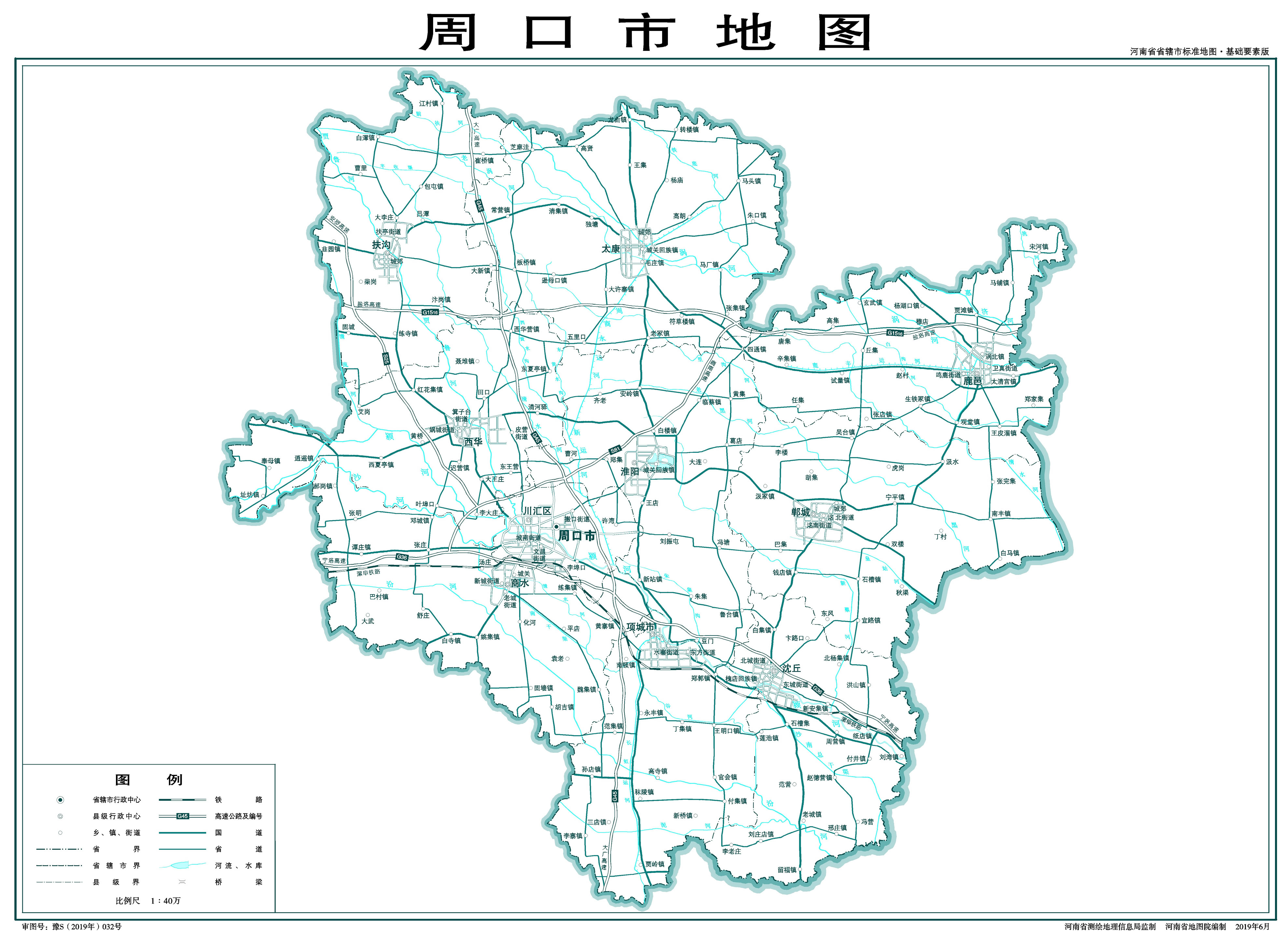 周口市轄2個市轄區(qū)、7個縣,代管1個縣級市: