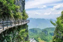 絕壁長(zhǎng)廊,又叫“絕壁棧道”,始建于2007年10月,全長(zhǎng)488米,118個(gè)臺(tái)階。位于海拔1700余米、凈高差300余米之絕壁山腰間。該工程既汲取了巴蜀古棧道營(yíng)造法,又結(jié)合現(xiàn)代鋼筋砼施工之先進(jìn)工藝,科學(xué)安全,凝聚著當(dāng)代開(kāi)發(fā)創(chuàng)業(yè)者的勇氣與智慧。沿棧道游覽,一路可以欣賞武陵風(fēng)光。該棧道共有七道彎八道拐,寓意是:路七彎八拐,心始終如一。歌曰:北斗七星有七斗(dǒu),絕壁棧道有七抖(dǒu);經(jīng)過(guò)一番驚嚇后,人生道路手拉手。