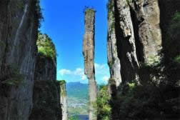 “一炷香”,高約150余米,最小直徑只有4米,此地的巖石的抗壓強(qiáng)度是800千克每立方厘米,它風(fēng)吹不倒,雨打不動(dòng),傲立群峰之中千萬(wàn)年,守護(hù)著這片神秘的土地。相傳,這根石柱是天神送給當(dāng)?shù)匕傩盏囊桓y香,如遇災(zāi)難將他點(diǎn)燃,天神看到寥寥青煙,就會(huì)下凡來(lái)救苦救難,所以當(dāng)?shù)匕傩辗Q(chēng)它為“難香”。從地質(zhì)學(xué)上講,由于長(zhǎng)江水系、清江水系長(zhǎng)期交錯(cuò)的影響,不斷地侵蝕,不斷地沖刷,形成如今陡峭的石柱,由于保存極度困難,所以地球上類(lèi)似細(xì)長(zhǎng)的石柱并不多見(jiàn)。