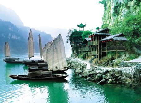 三峽人家依山傍水,風(fēng)情如畫(huà):傳統(tǒng)的三峽吊腳樓點(diǎn)綴于山水之間,久違的古帆船、烏篷船安靜地泊在三峽人家門(mén)前,溪邊少女揮著棒槌在清洗衣服,江面上悠然的漁家在撒網(wǎng)打魚(yú)……千百年來(lái)流傳不衰的各種習(xí)俗風(fēng)情體現(xiàn)著峽江人民的質(zhì)樸好客。