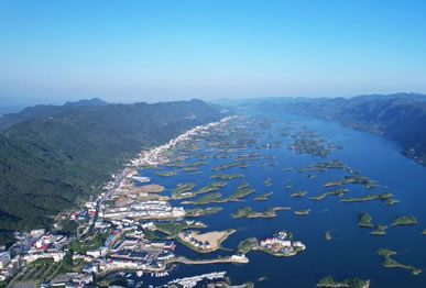 春季,綠水為底,滿目映山紅色景色秀美;夏日,碧水荷塘,杉林成海,氣候涼爽,適宜避署;秋季,百舸爭流,漁歌唱晚,一派勤勞致富的景象;冬日,晨霧繚繞,千島競季,蔚為壯觀。