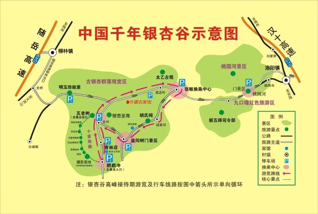 b.從隨州做汽車到洛陽鎮(zhèn),再從洛陽鎮(zhèn)做到銀杏谷的私人面包車,洛陽鎮(zhèn)到銀杏谷11公里,上午有班車。