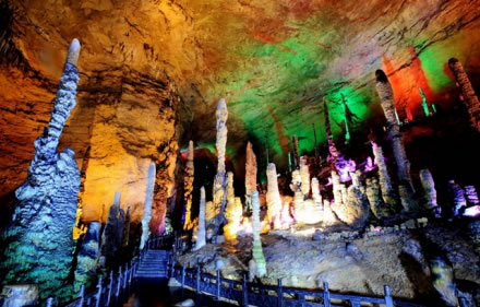 黃龍洞景區(qū)由“世界溶洞奇觀”黃龍洞、最美的田園風(fēng)光生態(tài)廣場及新民族音樂秀《煙雨張家界》三個部分構(gòu)成。