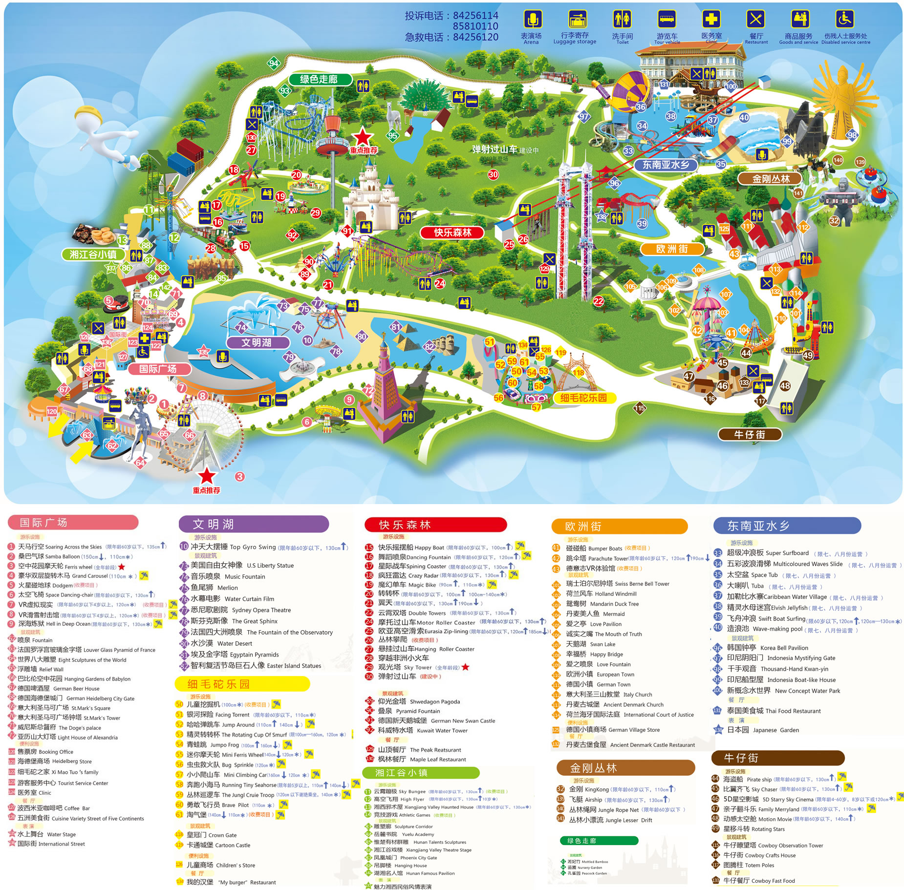 摩托過山車、云霄雙塔、沖天大擺錘、高空飛翔、海盜船、星移斗轉(zhuǎn)、比翼齊飛、天馬行空、豪華雙層旋轉(zhuǎn)木馬等