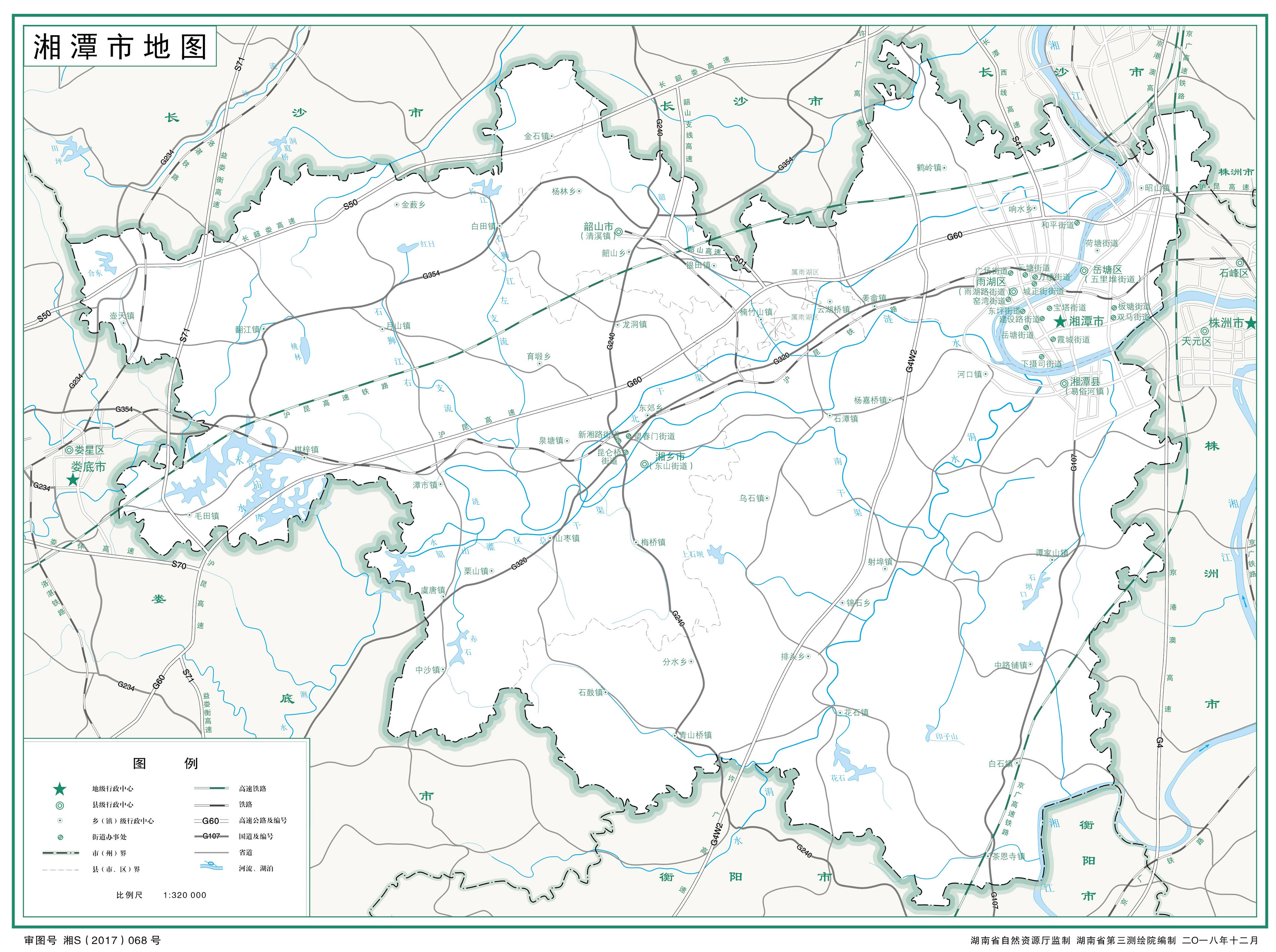 湘潭市位于湖南中部,湘江中游,與長沙、株洲各相距約40千米,成“品”字狀,在平面直角坐標上,湘潭市東西最大橫距108千米,南北最大縱距81千米;北連寧鄉(xiāng)市、望城區(qū)、長沙縣,南與衡東縣、衡山縣、淥口區(qū)交界,東接株洲市區(qū)、淥口區(qū),西與雙峰縣接壤。全市總面積5006平方千米。