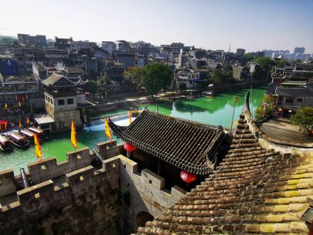 其地處武陵山脈南部、云貴高原東側,因背依的青山酷似一只展翅欲飛的鳳凰而得名。鳳凰古城建于清康熙四十三年(1704年),東門和北門古城樓尚在。城內青石板街道、江邊木結構吊腳樓,以及朝陽宮、古城博物館、楊家祠堂、沈從文故居、熊希齡故居、天王廟、大成殿、萬壽宮等建筑,全都透著古城特色。古城現(xiàn)有文物古建筑68處,古遺址116處,明清時代特色民居120多棟,各種廟祠館閣30多座,是中國西南現(xiàn)存文物建筑最多的縣。
