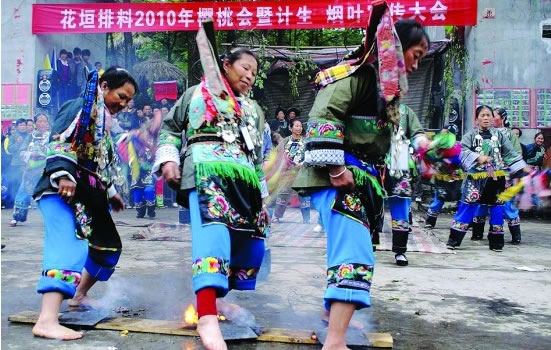 燕子山位于花垣縣排料鄉(xiāng)鏡內。山上樹木參天,山北有500多米高的峭壁,七眼泉水從半壁吐出,瀉向深谷,每當霧氣從谷底升起,人們就根據(jù)它的色彩判斷這一帶的天氣,白霧騰升——晴天,青霧飛出——陰天,黑霧翻滾——大雨即來。 |