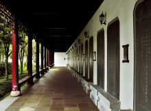 碑廊是御碑園的主要建筑,分列碑園東西兩側(cè),為硬山卷棚式仿古建筑。全長84米,壁上鑲嵌明清御祭文碑51塊,宋、明、清、民國和中華人民共和國等歷史時(shí)期有代表性的記事碑5塊,共56塊。最早御祭文碑是洪武四年(1371年)朱元璋登基告祭文碑。