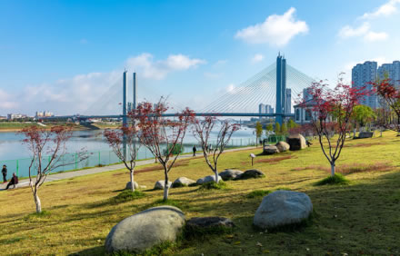 會龍山公園北接資江,南達(dá)花鄉(xiāng)路,西靠志溪河,東接資江一橋繁華路段,總面積152.2公頃。公園規(guī)劃為三個(gè)景區(qū),其中心區(qū)為佛教人文景區(qū),北為濱江景區(qū),南為自然山林景區(qū)。