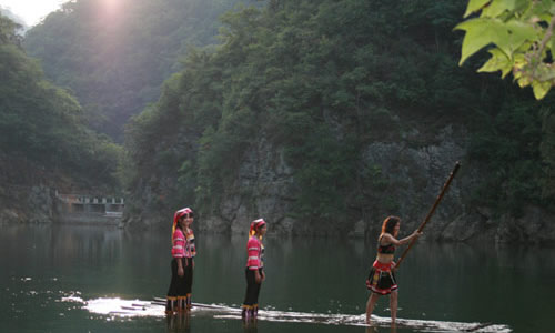 日月湖又名瀧泊平湖,即雙牌水庫(kù)。系1960年建成。壩址在縣城以南4公里瀧泊灘口,系湖南省重點(diǎn)水利工程,水庫(kù)全長(zhǎng)30余公里。遠(yuǎn)眺水壩巍峨雄偉,原中共中央中南局書記陶鑄親筆題寫的“雙牌水庫(kù)”四個(gè)大字,鑲刻在大壩頂端。昔日“下瀧船似入深淵,上瀧船似欲升天”的驚險(xiǎn)水道,如今變成幽美的平湖。若乘舟駛向水鄉(xiāng)澤國(guó)的江村鎮(zhèn),沿途可見水光瀲滟,山花爛漫,鳥鳴林密,層巒倒影,魚翔深潭,妙趣無窮,令人流連忘返。