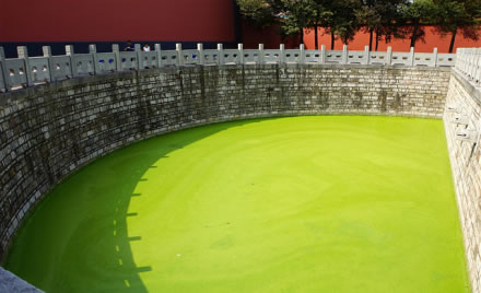 泮池位于萬仞宮墻北側,水池為半圓形,周圍有石欄桿,稱為“泮池”,是文廟標志性建筑之一。泮池下部原有兩組涵洞與宮墻外的運瀆相通,池水終年不竭?箲(zhàn)期間泮池曾被填平,1970年重新開挖,現(xiàn)與運瀆已不再相通。