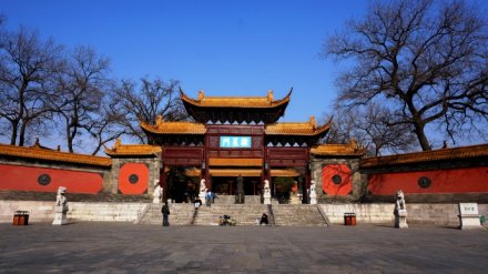 “萬仞宮墻”照壁面臨運瀆,全長近百米。照壁南側有四個磚刻大字“萬仞宮墻”,每個字約1米見方。仞,是度量單位,我國古代八尺或七尺叫做一仞。“萬仞宮墻”出自《論語·子張篇》:“……夫子之墻高數(shù)(萬)仞,不得其門而入”,意思是贊喻孔子知識淵博,道德文章水平非常之高。